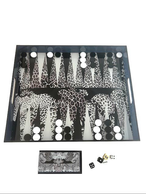 Black Leopard Acrylic Backgammon Set