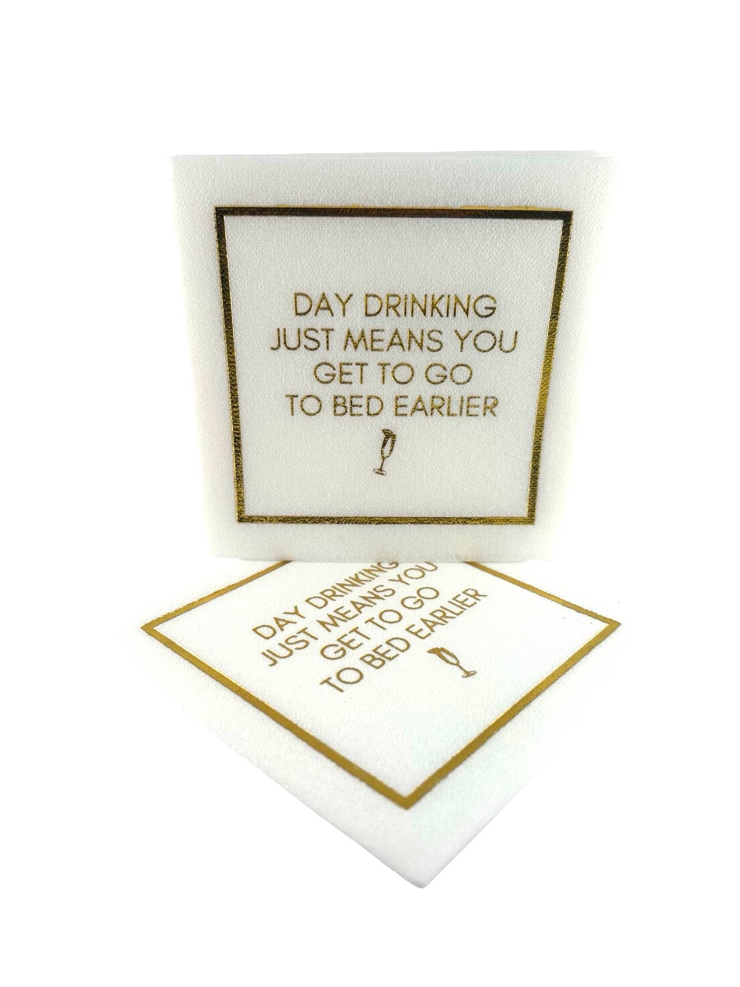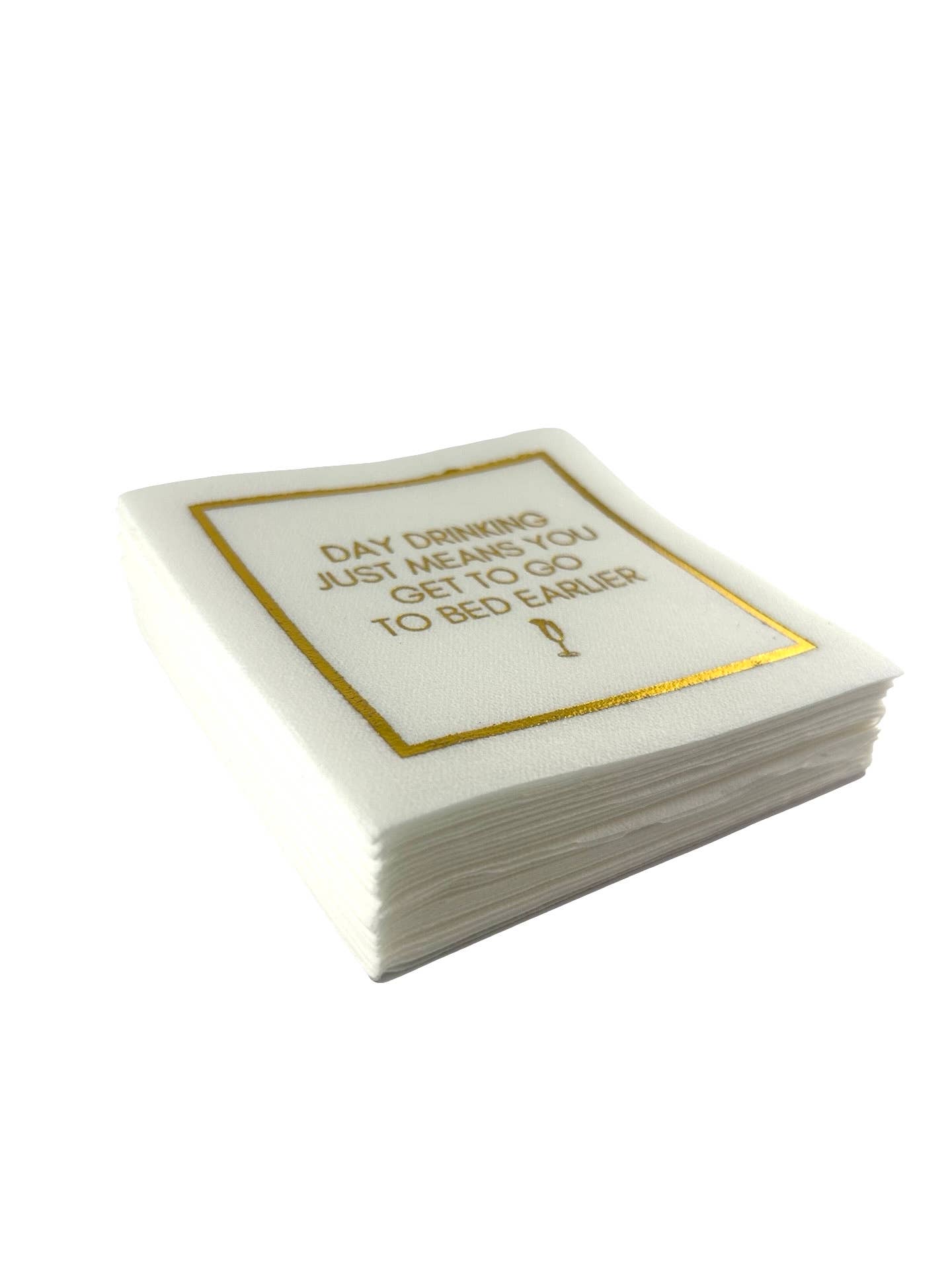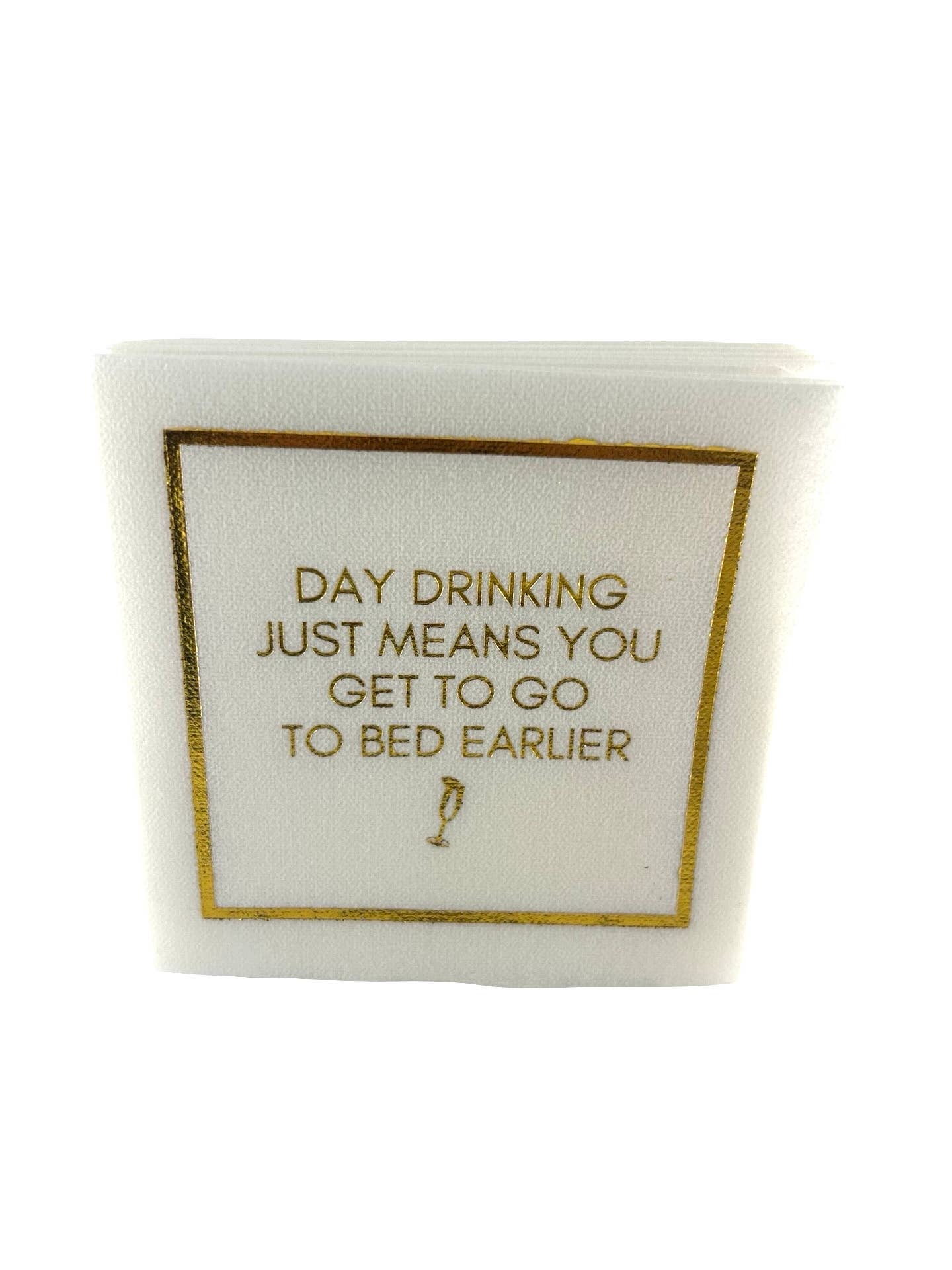 Bring personality and polish to any pour with our Day Drinking Linen-Feel Cocktail Napkins — the perfect mix of humor and high design. Made from thick, premium paper with a linen-like texture, they offer the softness of fine linen and the convenience of disposable napkins.